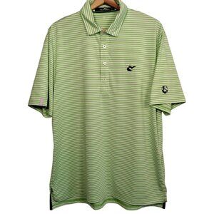 Ralph Lauren RLX Polo Shirt Men Large Green White Stripe Caves Valley Golf Club