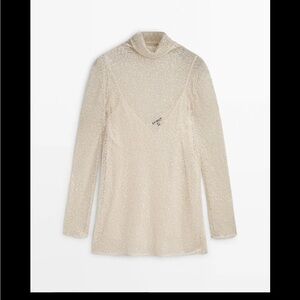 NWT Massimo Dutti Sequined Cream Cowl Neck Top XS