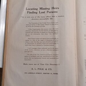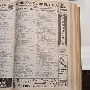 Got this about 12 years ago when my father passed away cleaning out his apartment. He was born in 1939. Was a child in the 40's. This was his parent's phone book/directory for our county back then. It's pretty old, long before Nynex Yellow pages. Amazing condition considering. 896 pages. Some yellowing pages due to age. Entire book is legible. No major flaws. Binding is intact. Page 1 has some creasing shown in photo (was folded a little) but that's the only page I noticed to be creased) & pg. 487 has small tear through at bottom- lettering not effected as shown.