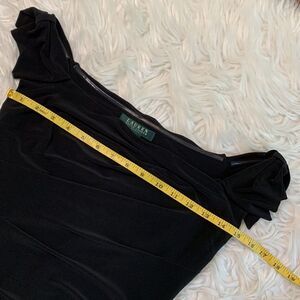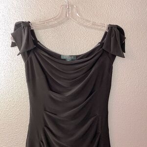 Size 2 LAUREN Ralph Lauren Wide neckline bow details on shoulders ruching front bodice black dress zip closure Fully lined Excellent preloved preowned condition, From smoke/pet free home, Please review all pictures to your satisfaction prior to purchasing, zoom in/out to see Fine details of thisi item. Final sale.