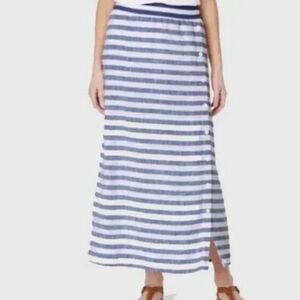 J. Jill Love Linen Seaside Stripe Maxi Skirt Coastal Grandma Blue White Nautical