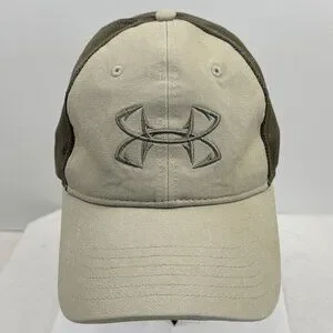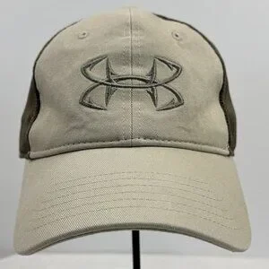 Under Armour Adjustable Tan Mesh Trucker Hat Embroidered Free Fit Snapback Cap
