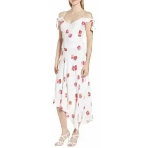 Lewit Women's Cold Shoulder Dress Sleeveless V-Neck Floral Print White Size 14