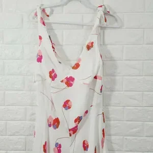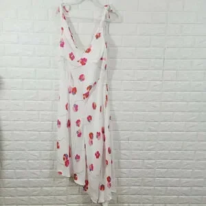 New Lewitt Women's Dress Sleeveless V-Neck Floral Print White Size 14