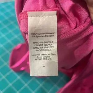 Calling all pink lovers and party goers! This drape style backless mini dress is perfect! It is very stretchy to accommodate many sizes. It is marked a Large but would fit XL also. I posted a pic of the measurements. Beautiful bright pink shiny fabric!!