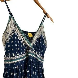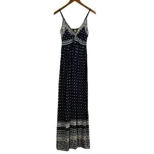 Devi Maxi Dress, Spaghetti Strap Navy Blue Long Boho Rayon Dress, Small / Medium