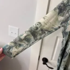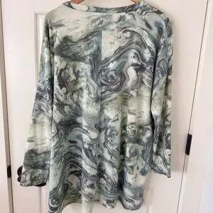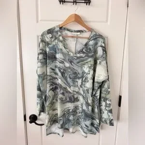 Zenana Marble Print V-Neck Long Sleeve Top – Size L