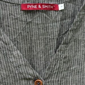 Pyne & Smith V neck pinstripe Gray Button-Front Dress size S