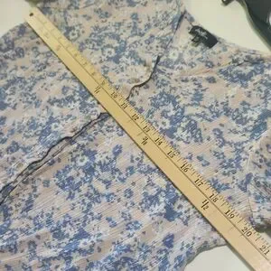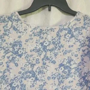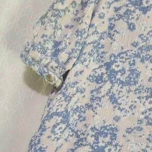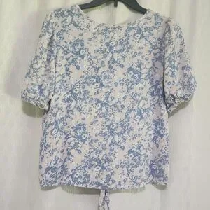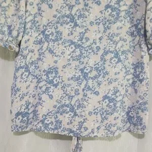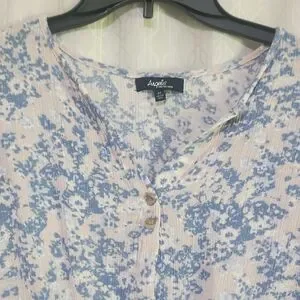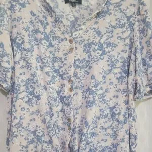 This chic blouse from Angels features a delicate blue and white floral pattern, enhanced by a stylish tie front detail. The short sleeves and relaxed fit offer a comfortable and fashionable look, perfect for any casual occasion.