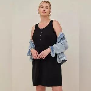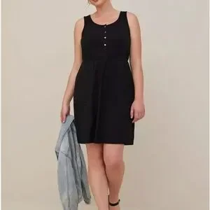 Torrid Mini Jersey Bodycon Dress Black 3 Plus Size 3X Pockets Sleeveless Snaps