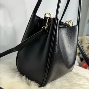 This elegant black leather handbag is perfect for any occasion. Its sleek design and high-quality material make it a must-have accessory.