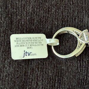Size 8, new from JTV Ascher cut white diamond simulant ring in platinum over silver. Stones total 10.25 carats.