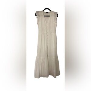 Quince Organic Textured Cotton Smocked V-neck Midi Small