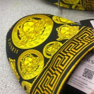 Authentic Versace Small (5-6) Black and Gold Unisex House Slippers NWT Brand New In Package.