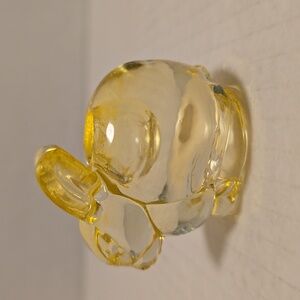 Charming yellow glass rabbit candle holder. Perfect for decor or collection.