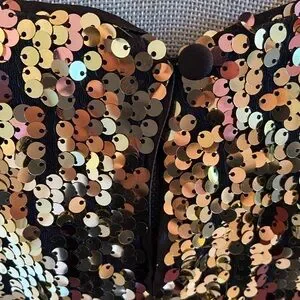 Features a shimmering metallic ombré gradient. Perfect for a night out. Fun and sparkly!!!