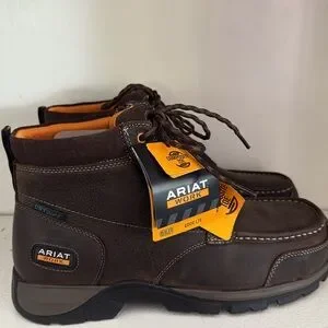 These NWT men’s Ariat boots feature a rich brown leather lace up design. Style is Edge LTE Chukka H2O Comp Toe. Opposite toe. Waterproof. 100% nonmetallic.