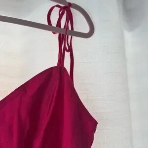 Add a pop of color to your summer wardrobe with this vibrant fuchsia cami top from Express. Featuring adjustable tie straps, a flattering sweetheart neckline, and a smocked bodice that stretches for the perfect fit. The lightweight, breathable fabric and subtle peplum hem make it ideal for warm days and casual outings. Tagged size M. In excellent pre-owned condition with no flaws.