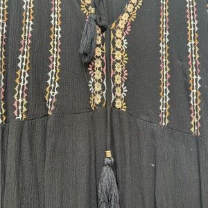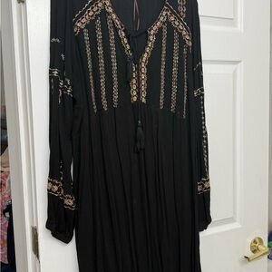 The Knox Rose sundress in classic black is designed with a crew neck and elegant bishop sleeves, making it a versatile choice for both casual and work occasions. Its flowing A-line silhouette ensures comfort and style, while the long sleeves add a touch of sophistication to your everyday wardrobe.