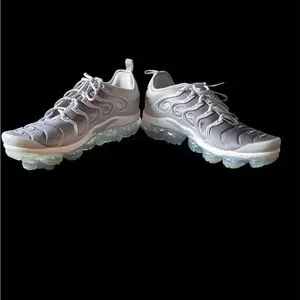 Stylish gray athletic sneakers featuring a unique air cushion sole. Perfect for sports and casual wear.