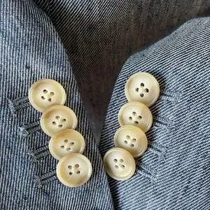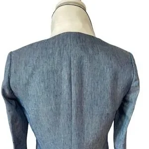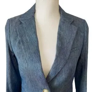 Stylish blue blazer with a single button closure. Features notched lapels and front pockets. Perfect for a polished look.