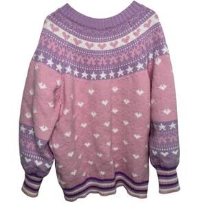 Chunky, oversized, awesome. Hearts, bows, and stars, oh my! Enjoyed this for a season, fresh from my dry cleaner and ready for someone new to love it