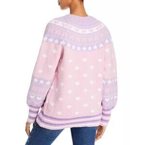 LoveShackFancy Amalo Boyfriend Cardigan Sweater Macaron Pink heart bow size XL