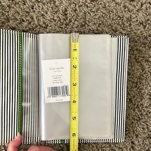 NWT Fabric covered black photo album by Kate Spade. Features a vibrant green logo plate. 12 plastic sleeves inside to hold 12-24 4x6 photos.