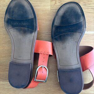 In great condition, only worn a few times (see photo of underside of shoe). These are super cute orange Franco Sarto Maura sandals in soft leather, size 8. Non smoking home.