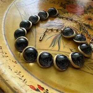 Vintage 1950s Charel Black Crescent Moon Thermoset Necklace