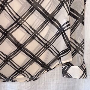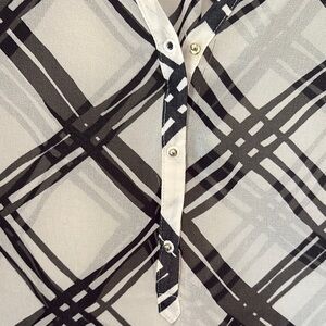 Elevate your style with this Banana Republic blouse, featuring a timeless black and white color scheme. Its classic design makes it a versatile addition to any wardrobe, perfect for both casual outings and formal events. Crafted with precision, this top promises a refined and polished appearance.