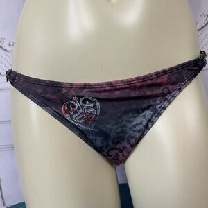 Sinful By Affliction Cedar Chain Bikini Bottom Red & Grey Wings Rhinestones Lg