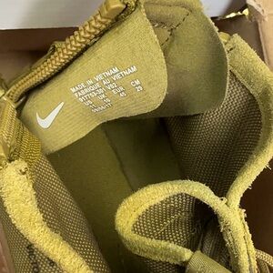 Experience the perfect blend of style and durability with these Nike combat and moto boots. Crafted in a striking green hue, these high-tops are designed for both rugged adventures and urban exploration. Their robust construction ensures long-lasting wear and comfort.