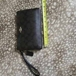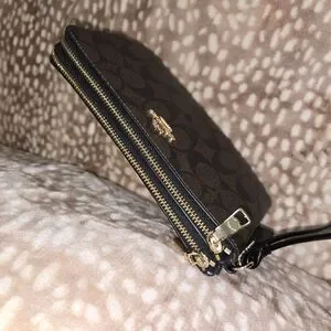 EUC. Elegant Coach wristlet with iconic pattern. Features a sleek wrist strap.