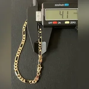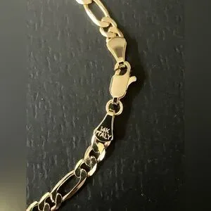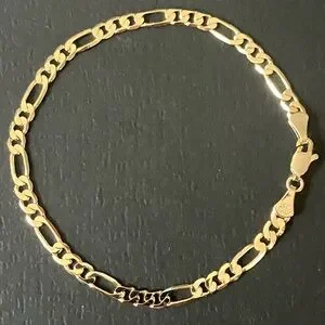 Solid Figaro Bracelet 14K Yellow Gold Filled 8”