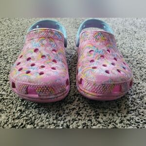 They do have some wear, please see pictures. There is still a lot of use and play left. Great for every day use, park, or to use as water shoes.
