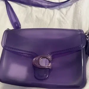 Rare and stylish Coach Jelly Tabby in translucent purple – a fun twist on the classic Tabby silhouette. This limited-edition bag features a glossy PVC body, signature C-logo hardware, and adjustable strap. Perfect for summer, festivals, or adding a bold pop to your outfit.