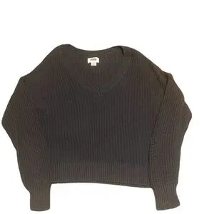 Stay warm and stylish with this cozy black V-neck sweater. Perfect for any occasion and very soft material! VS Pink Dark Grey Knitted Sweater Size Large