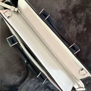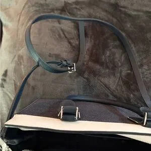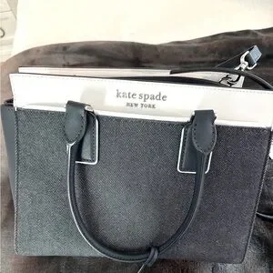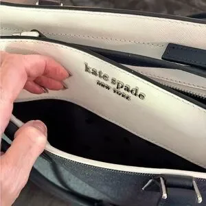 This sophisticated Kate Spade satchel showcases a timeless denim blue and white color scheme, perfect for elevating any ensemble. Crafted with a structured silhouette, it offers both style and durability, making it an ideal choice for everyday use. Multiple inside pockets. EUC