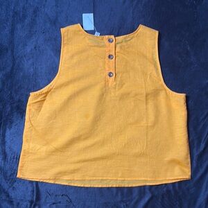 J. Crew Yellow Boxy Sleeveless Linen Tank Top Back Button Detail Crew Size XL