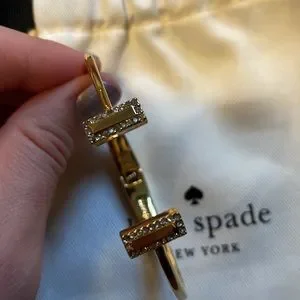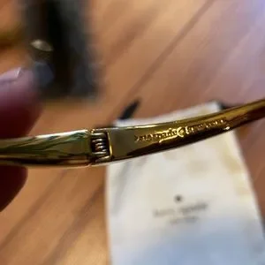 Great condition! Worn twice. Kate Spade Gold Bangle. Diamond accents. Spring hinge that will fit multiple wrist sizes.