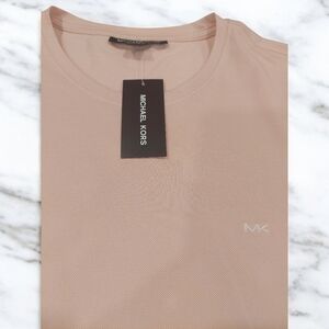 This Michael Kors tee in a creamy hue is crafted from a comfortable cotton blend, featuring a classic crew neck and short sleeves. Its simple and timeless design makes it a versatile addition to any wardrobe.