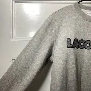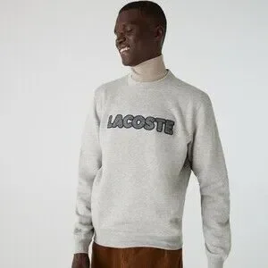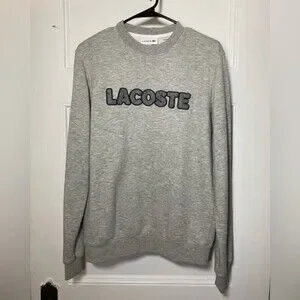LACOSTE Men's Crewneck Flecked Fleece Logo Patch Sweatshirt Gray Sz Small