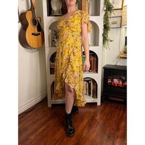 Miami Womens Floral High Low Yellow Maxi Dress Sz M Y2K Cottagecore Garden Party