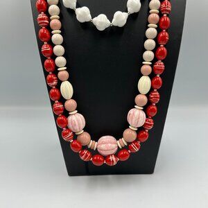 Vintage Lucite Bead Necklaces Lot Red White Marbled Lucite Chunky Layered Bold