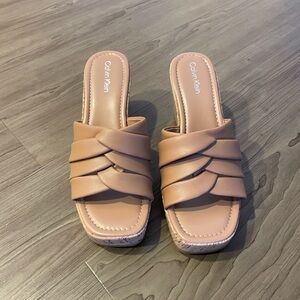 Calvin Klein Tan Wedges with Geometric Design NWOT