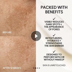 A superior serum-moisturizer hybrid that visibly reduces dark spots and the appearance of pores, hydrates, retexturizes and strengthens the skin barrier for a petal-smooth, even canvas with lit-from-within radiance.