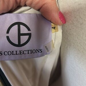 Chic dress with black and gold cord embroidered lace. Slit in back, back zip, fully lined. Perfect for elegant events!