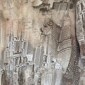 Chico's Beige & brown Cityscape Women's Top size 3 large 95% cotton 5% spandex