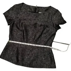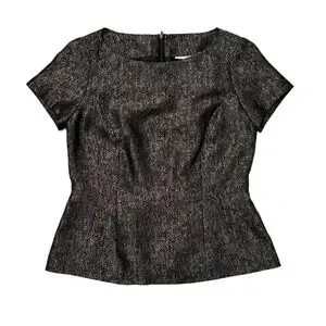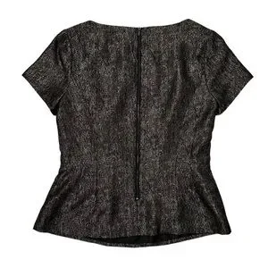 Halogen Black Silver Metallic Peplum Boat Neck Short Sleeve Blouse M
